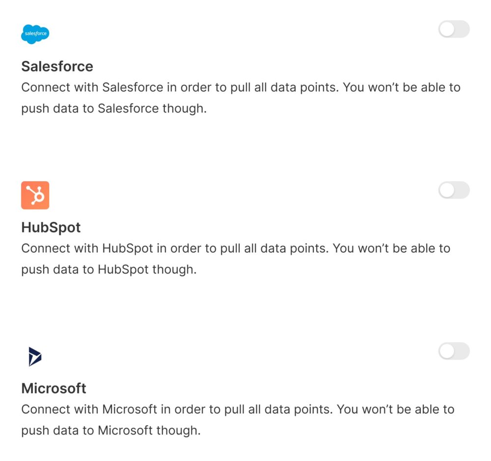 Simply choose your CRM system and log-in with admin credentials via Single-Sign-On (SSO). We will then provide you with real-time data. Goodbye spreadsheet, goodbye errors. 👋